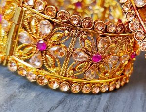 Bangles Jewellery – Real Magenta Stone and Gold Plated…